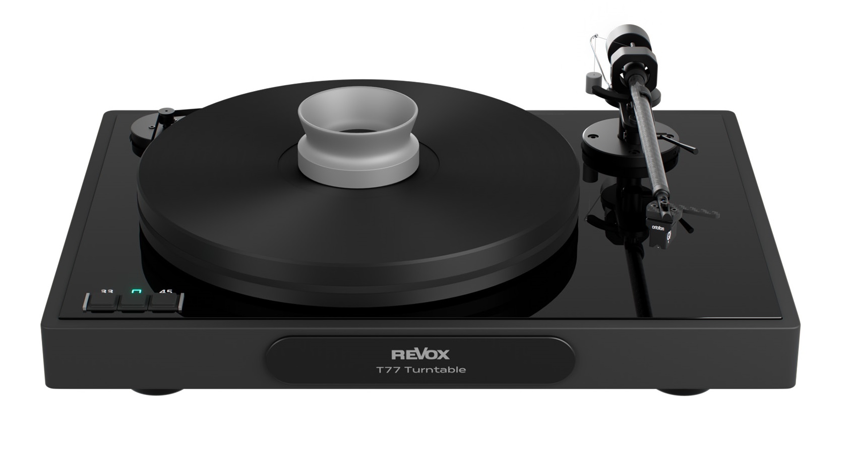 In the spring of 2025, the Swiss audio brand Revox launched the T77 Alice Cooper Edition , a turntable with stickers and a color scheme inspired by rock artist Alice Cooper. The T77 Alice Cooper Edition is now also available in a regular version, with no quantity limit, without the Alice Cooper colors, and a much lower price. The T77, officially called the Studiomaster T77, features a built-in phono amplifier and XLR outputs.