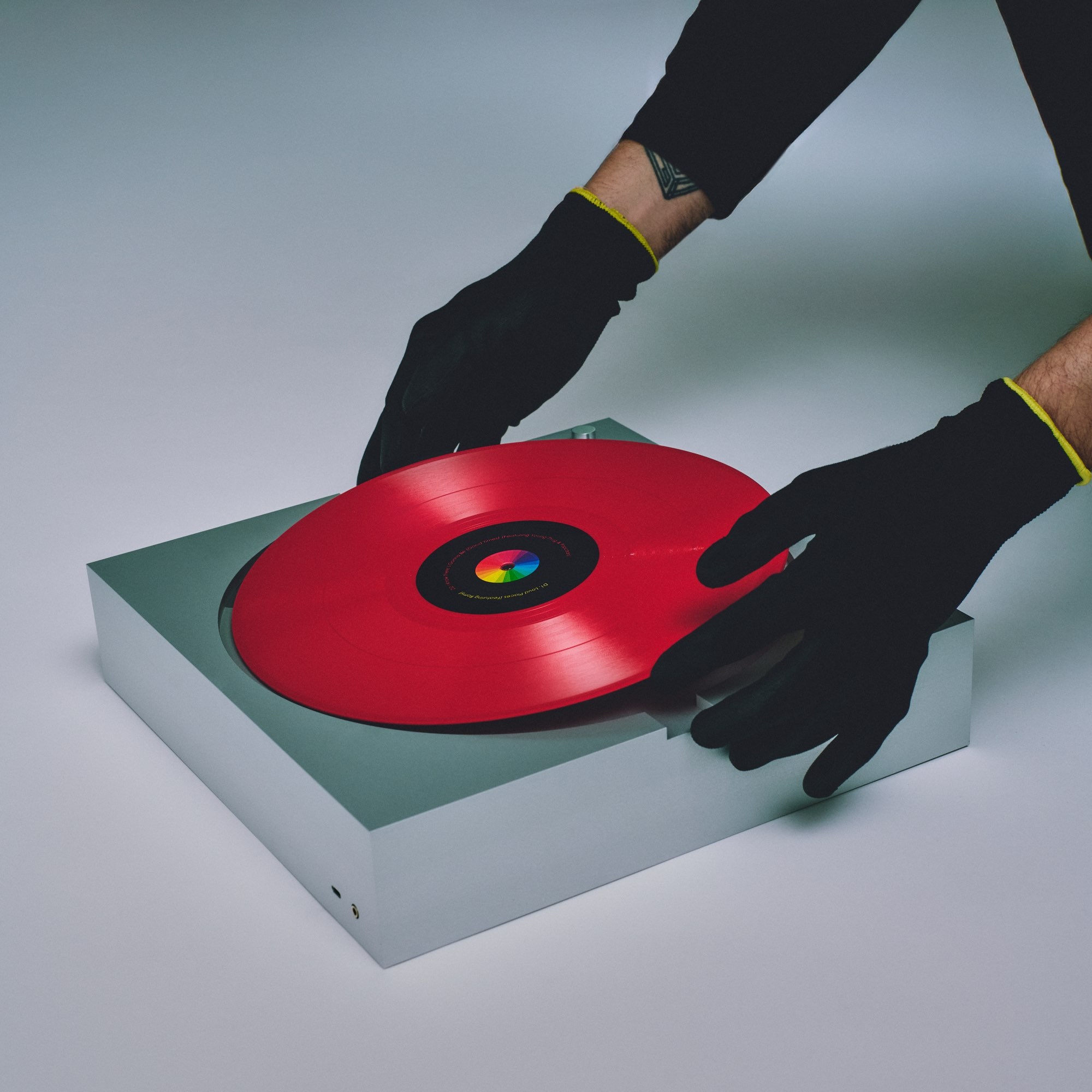 A distinctive feature of the design is its capability to stand upright while playing records. The vinyl remains securely in position, rotating horizontally against the structure, which adds a captivating visual aspect to the listening experience.